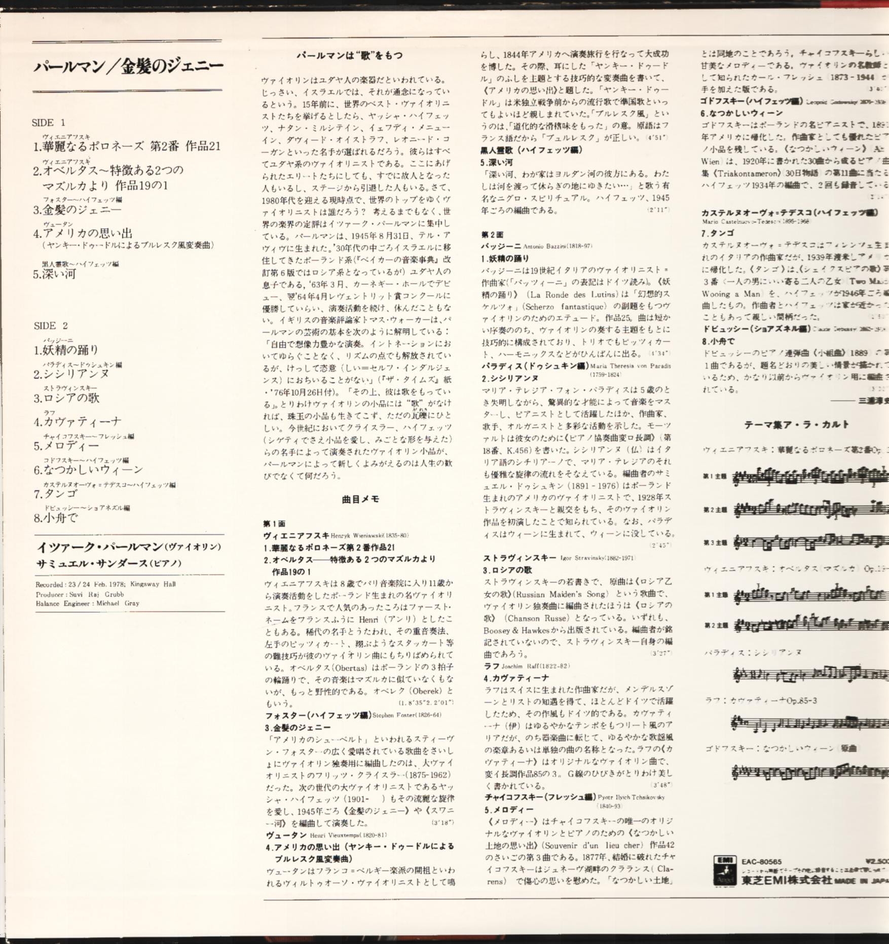 Bisy – Itzhak Perlman, Samuel Sanders – Wydanie japońskie (LP)