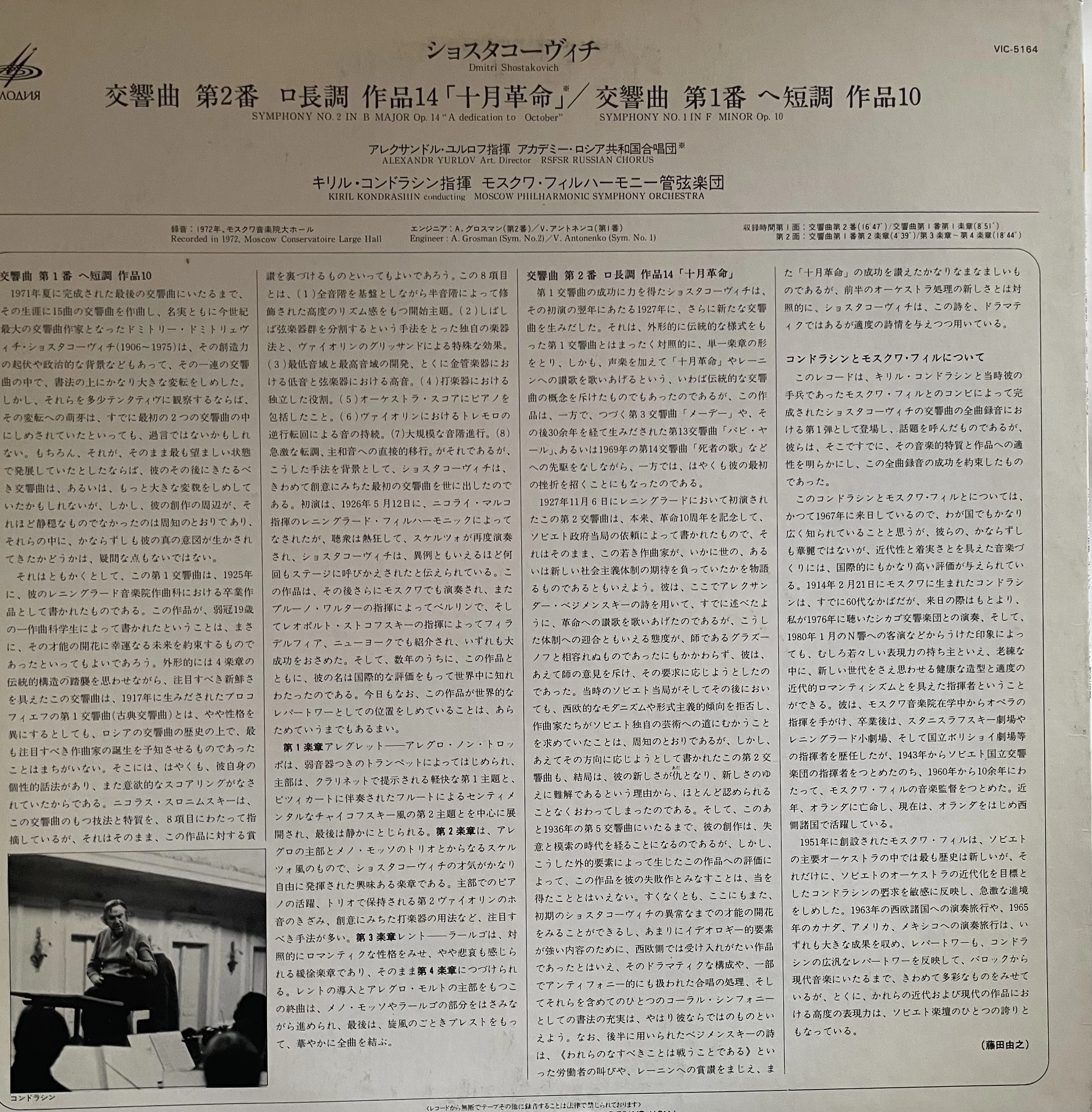 D. Szostakowicz – Symfonie nr 1 i nr 2 – Kondrashin – Moscow Philharmonic Orchestra ( Gatefold LP) Japan
