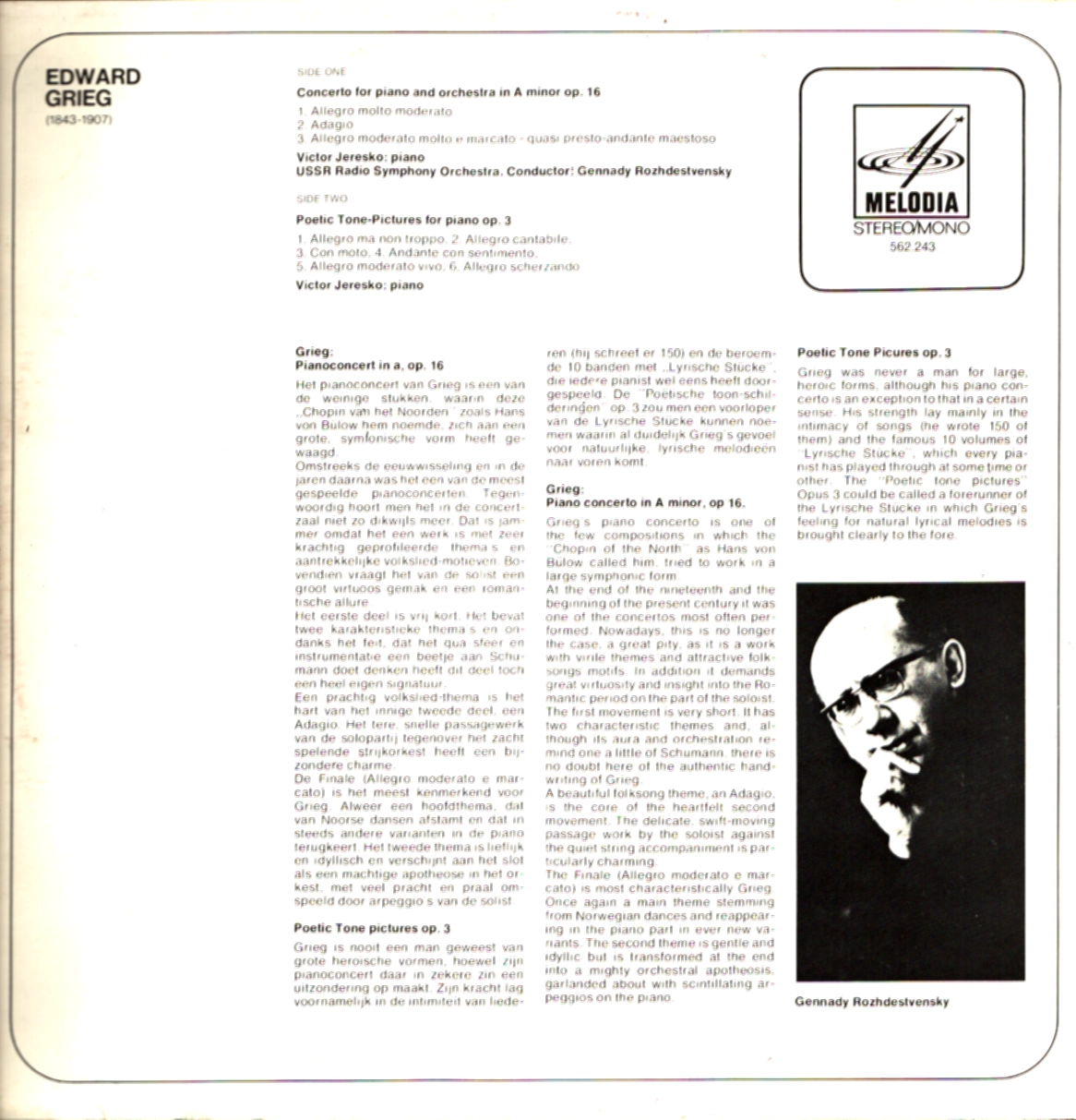 E. Grieg – Koncert fortepianowy / Liryczne obrazy tonalne – Victor Eresko – USSR Radio SO / Rozhdestvensky (LP)