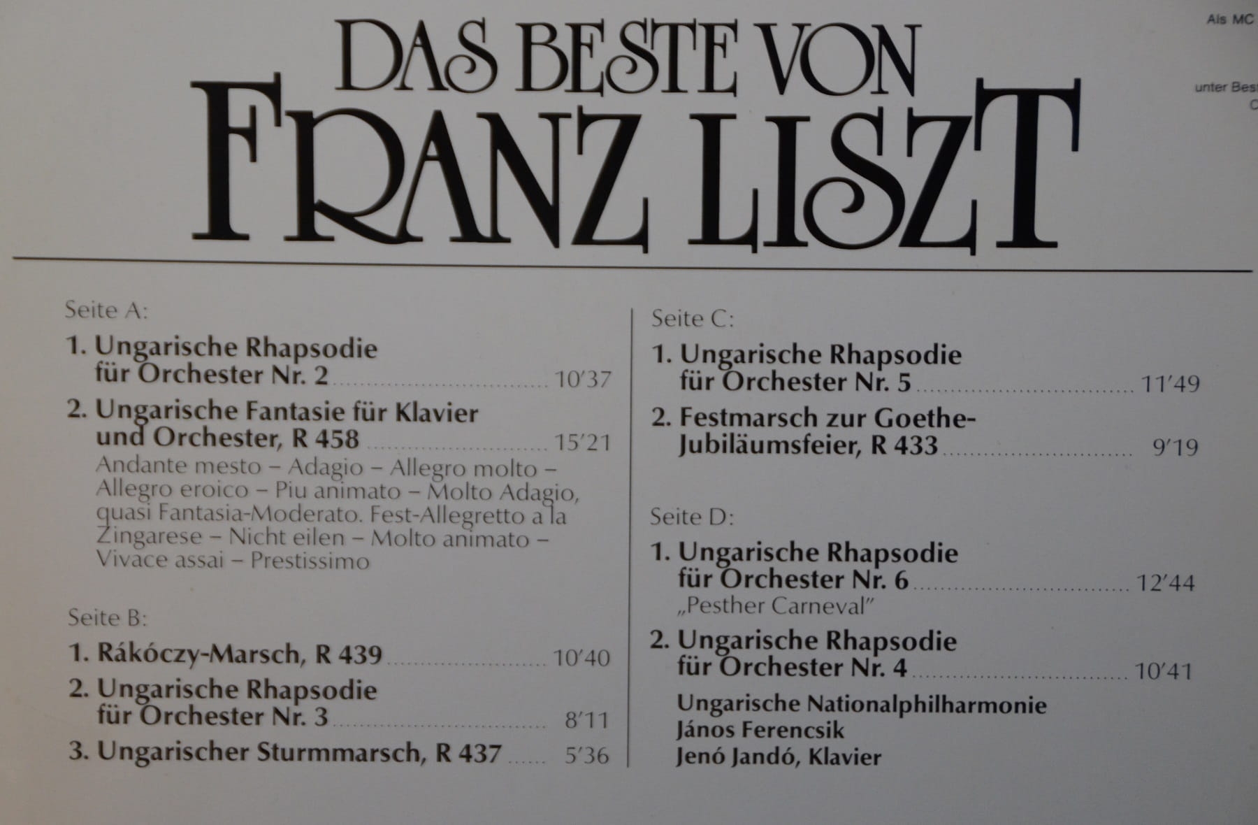F. Liszt – Wybór Kompozycji . – Wybór (2 LP)