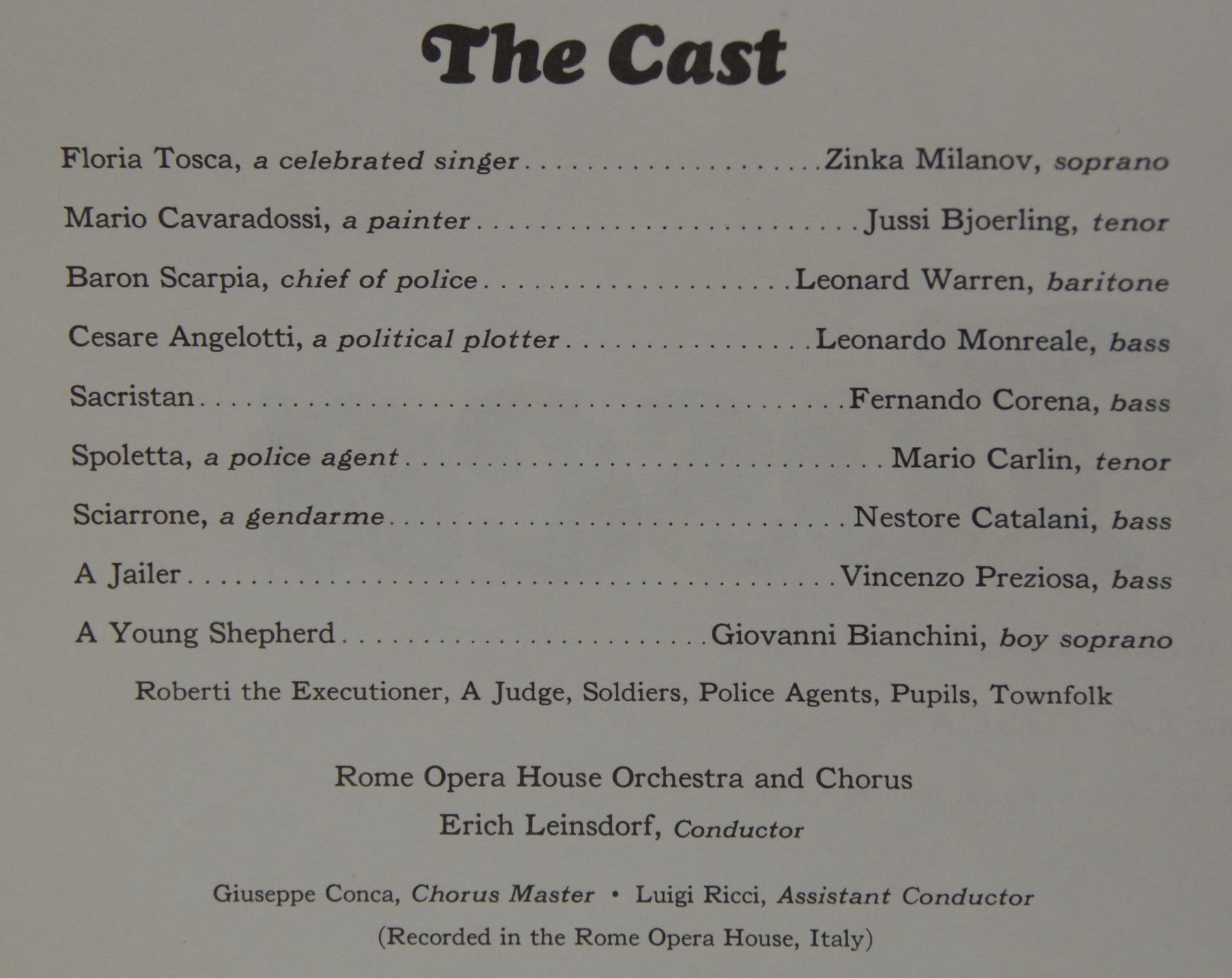 G. Puccini – Tosca – Bjørling, Warren, Leinsdorf – Rome Opera (LP)