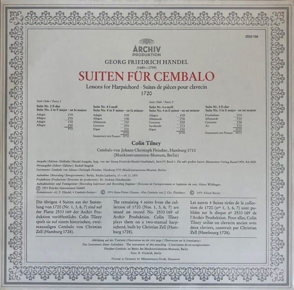 G.F. Händel – Suity – Colin Tilney (LP)