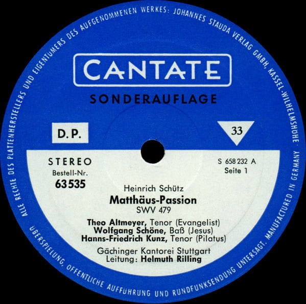 Label: CANTATE | Format: LP 12" | Prędkość: 33⅓ rpm | Nagranie: Stereo | Stan: EX | Egzemplarz z kolekcji Wojciecha Padjasa – autora audycji „Muzyka spod Igły” w RMF Classic.