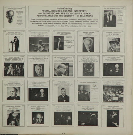 Label: BRUNO WALTER SOCIETY | Format: LP 12" | Prędkość: 33⅓ rpm | Nagranie: Stereo | Tłoczenie: | Rok wydania: | Stan: EX | Egzemplarz z kolekcji Wojciecha Padjasa – autora audycji „Muzyka spod Igły” w RMF Classic.