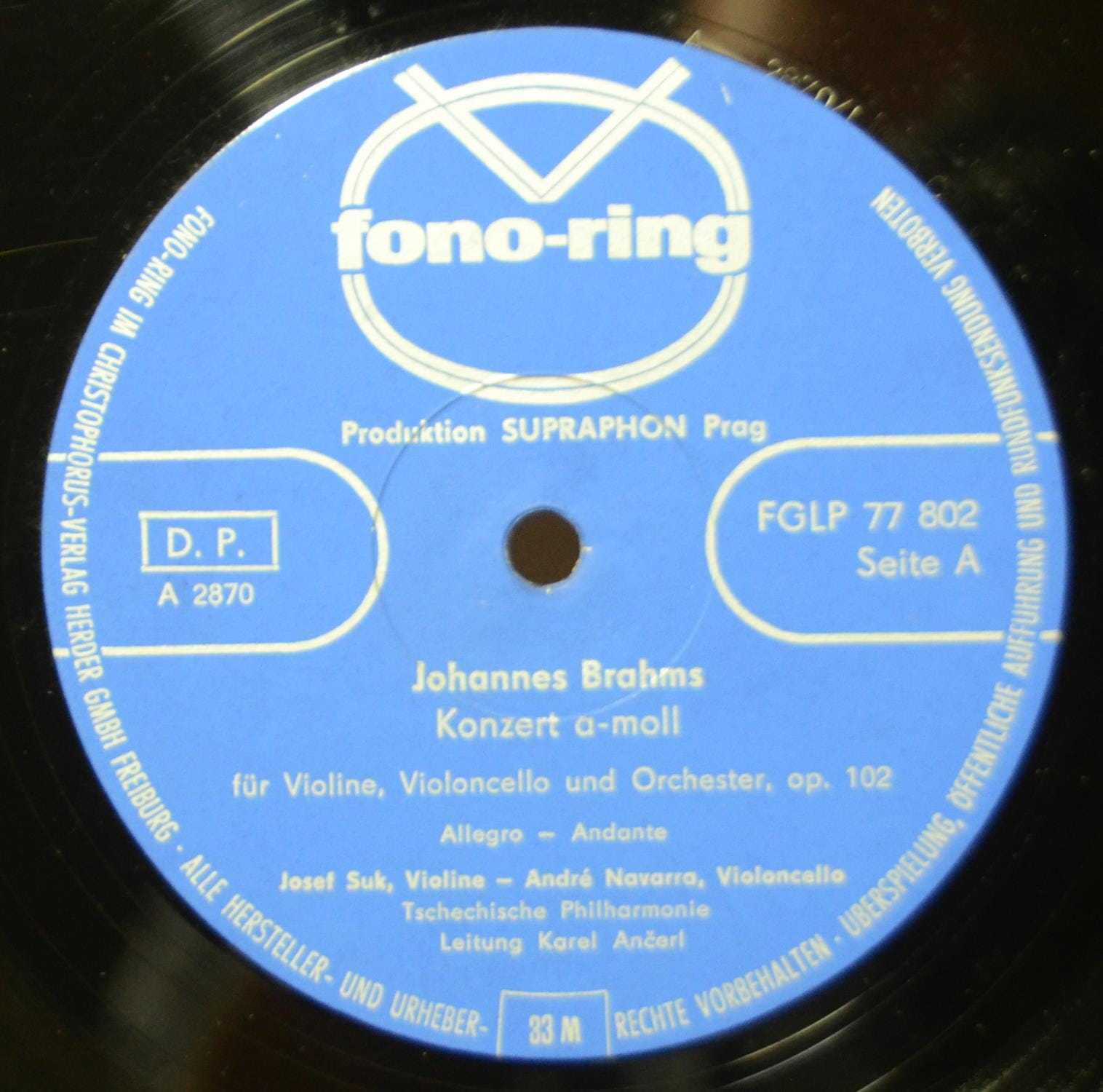 J. Brahms – Konzert Fur Violine, Violoncello – Tragische Ouverture, Suk, Ancerl (LP)