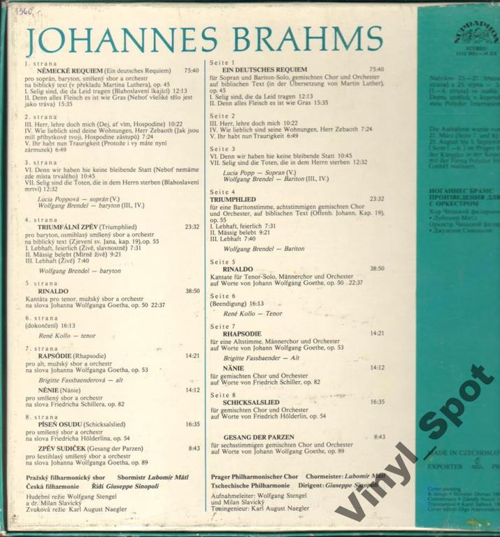J. Brahms – Utwory Chóralne- Komplet Sinopoli (4 LP)