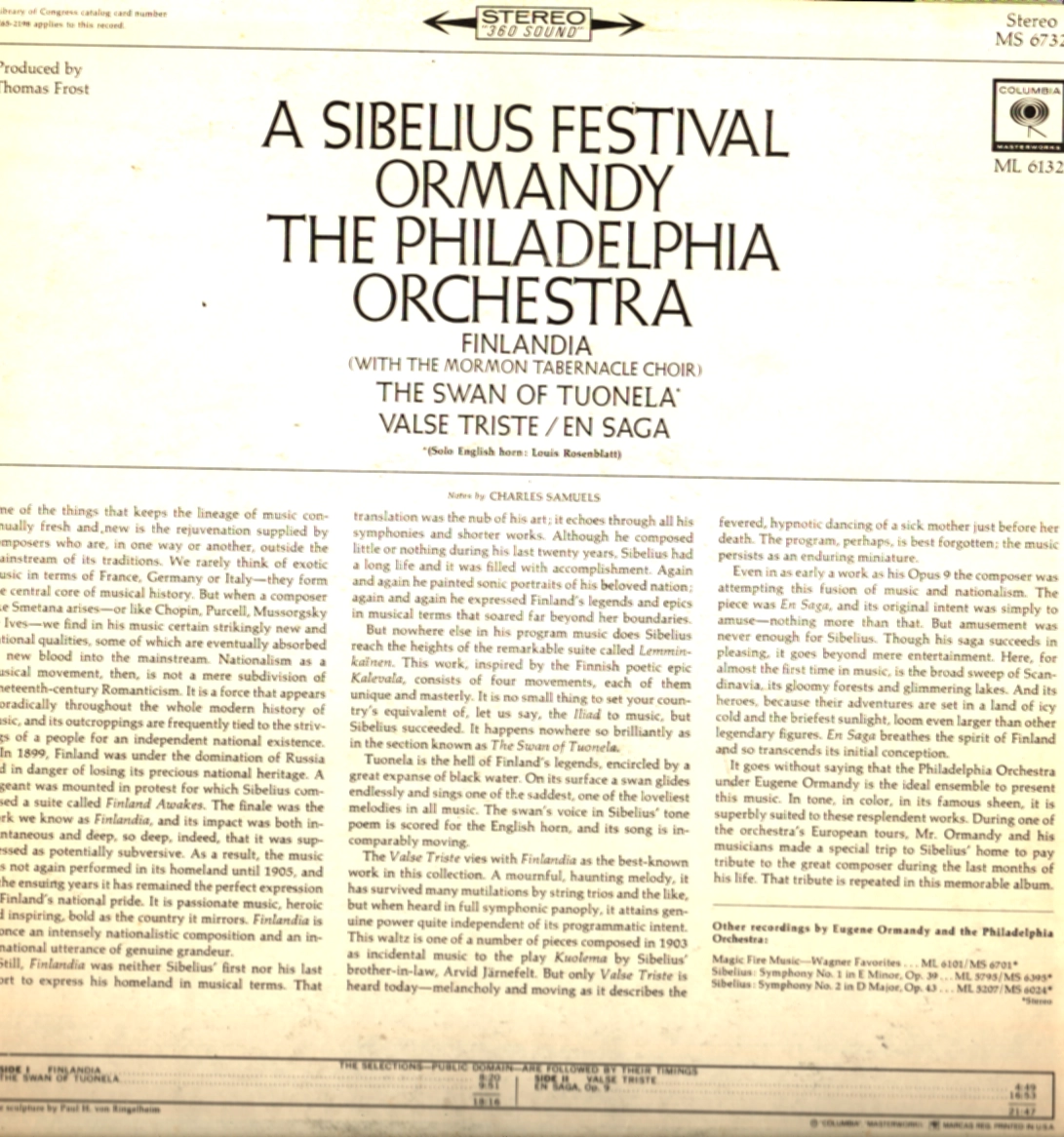 J. Sibelius – Valse Triste / En Saga / Łabędź z Tuoneli / Finlandia – Ormandy – Philadelphia Orchestra (LP)