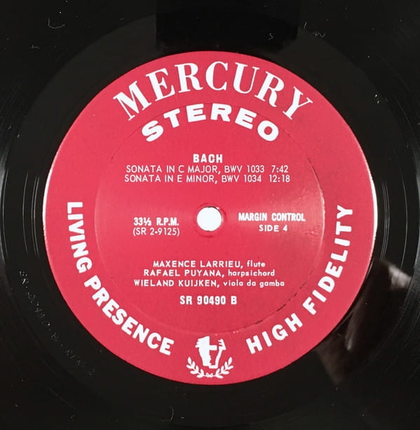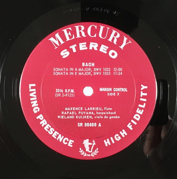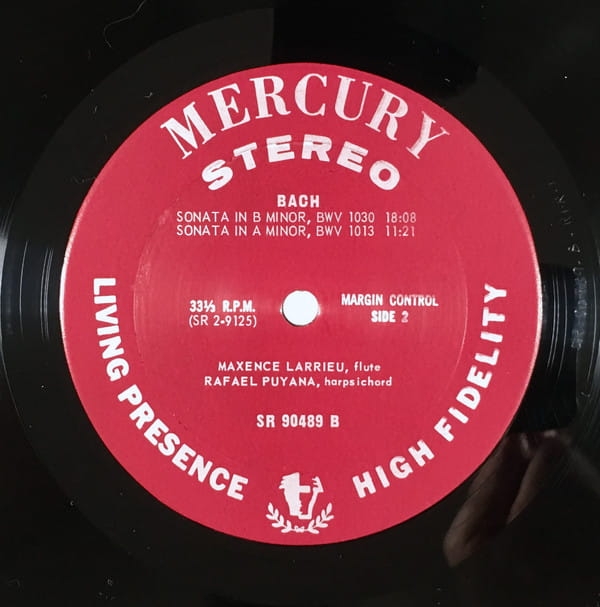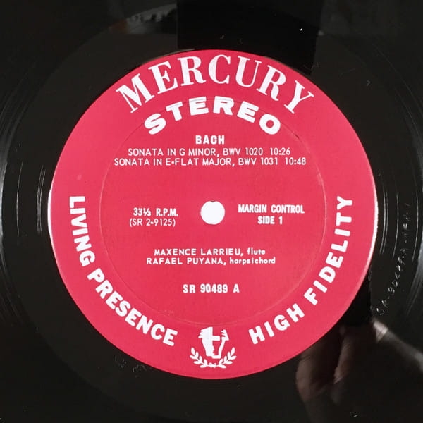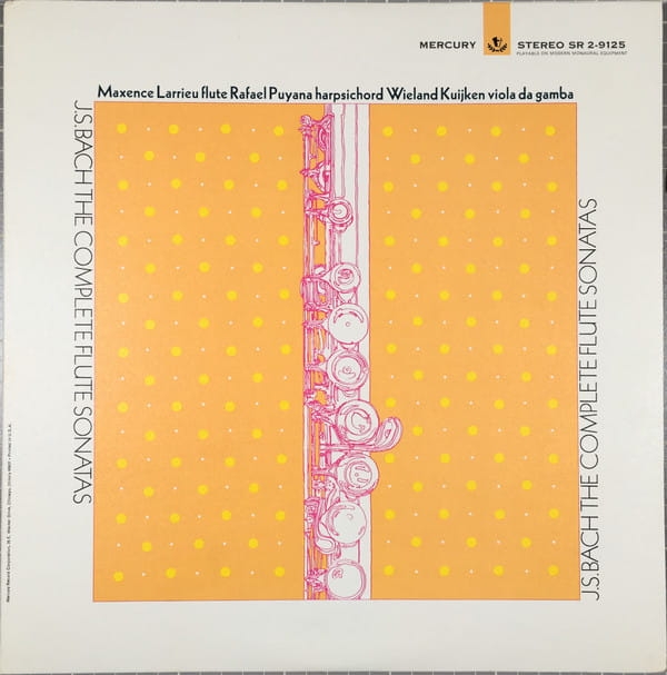 Komplet sonat fletowych J.S. Bacha — Maxence Larrieu, nagranie prawie niedostępne. Amerykańskie tłoczenie 1968, 180 g. Stan EX.