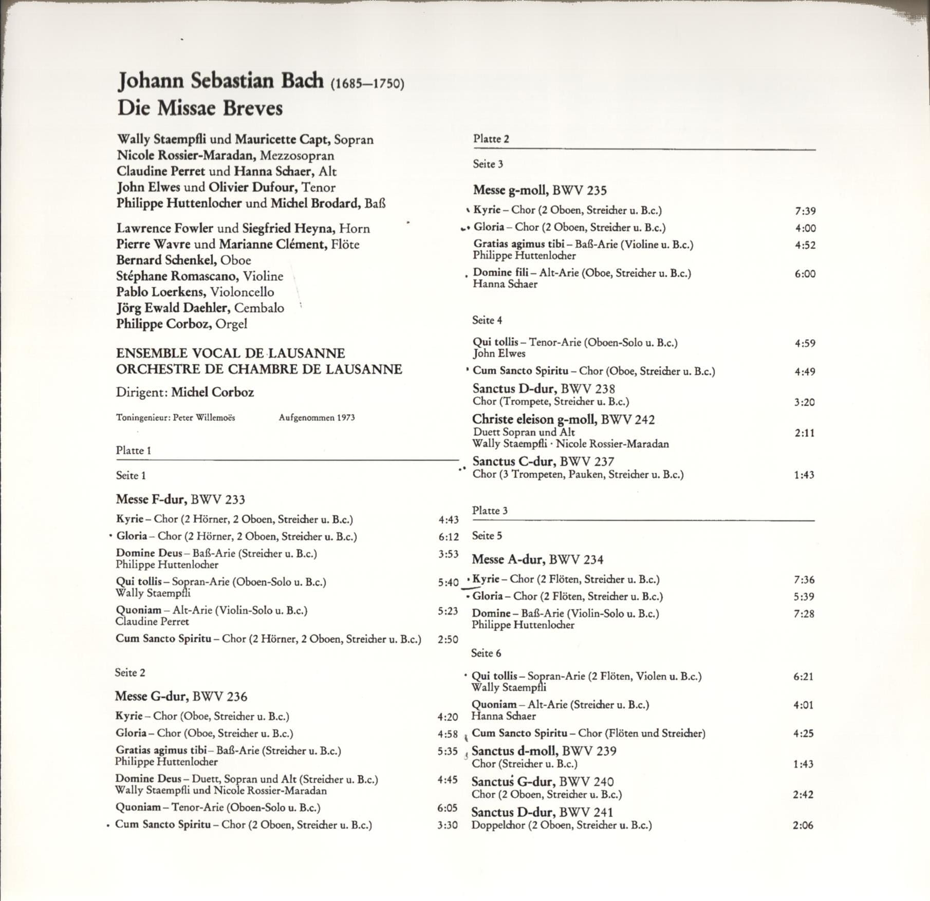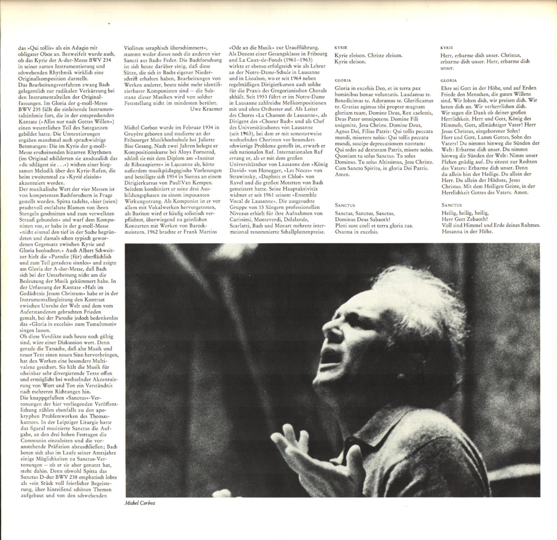 „Missae Breves” (dosłownie „krótkie msze”), zwane również „Mszami luterańskimi”.Wiadomo że Bach zamiast pisać oryginalną muzykę do tych krótkich mszy przetworzył części z 4 lub 5 wcześniejszych kantat. Wszystkie msze mają tą samą konstrukcję ale inny nastrój. Świetny chór z Lozanny i genialny kapelmistrz Michel Corboz.
