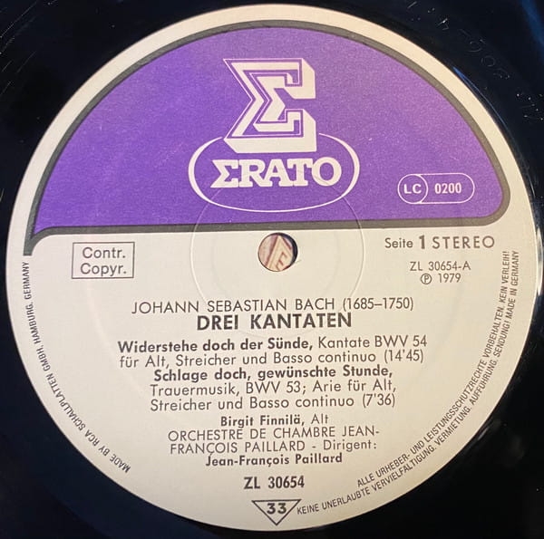 Marie-Claire Alain francuska wirtuoz organów i doskonała orkiestra Jean-François Paillarda.Wspaniały głos szwedzkiej alcistki Birgit Finnili.