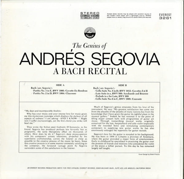J.S. Bach – Partity i suity –Segovia