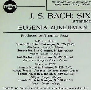 Eugenie Zukerman flecistka, żona Pinchasa Zukermana, razem z klawesynistą i organistą Anthony Newmanem wykonują sześć sonat Bacha.