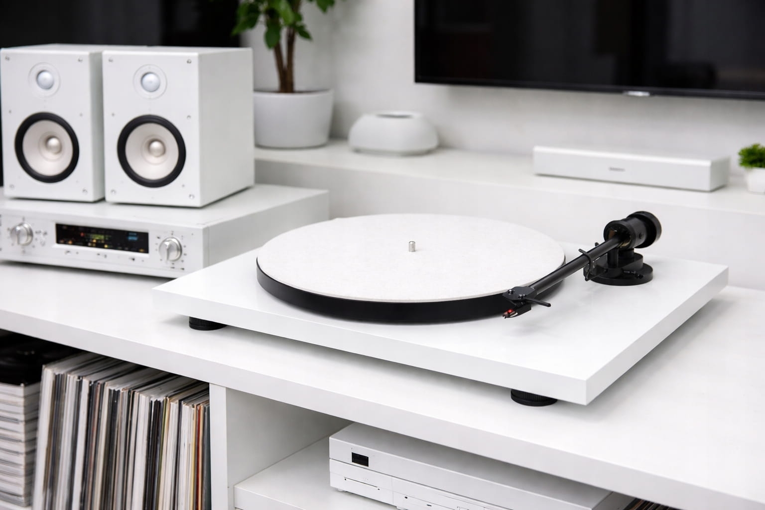Biały filc w zastosowaniach gramofonowych to rzadkość — rynek od dekad zdominowany jest przez czerń. Tymczasem biała mata to świadomy wybór estetyczny, który zyskuje na znaczeniu wraz z rosnącą popularnością gramofonów o jasnej kolorystyce: Pro-Ject Debut Carbon w wersji białej, U-Turn Orbit White, Rega Planar 1 Gloss White czy Audio-Technica AT-LP120 w edycjach limitowanych. Na talerzu akrylowym,lub szklanym,biały filc daje efekt, którego czarna mata nigdy nie osiągnie. Pod względem akustycznym identyczna z wersją czarną — 2 mm miękkiego filcu pochłaniają mikrowibracje, chronią lakier płyty i zapewniają swobodny poślizg podczas cueing. Grubość 2 mm to bezpośrednia wymiana fabrycznej maty filcowej bez żadnych dodatkowych regulacji. Antystatyka 2/10 — jak każdy filc, nie odprowadza ładunków elektrostatycznych.