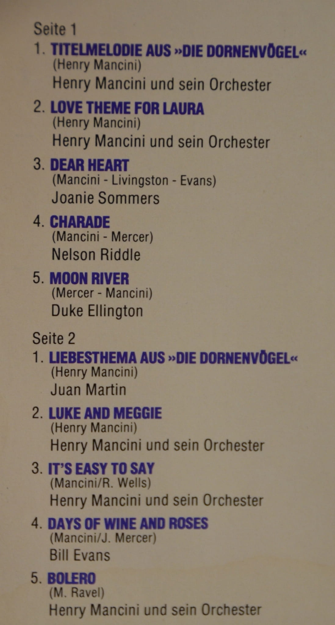 Przeboje Manciniego – Różni wykonawcy (LP)