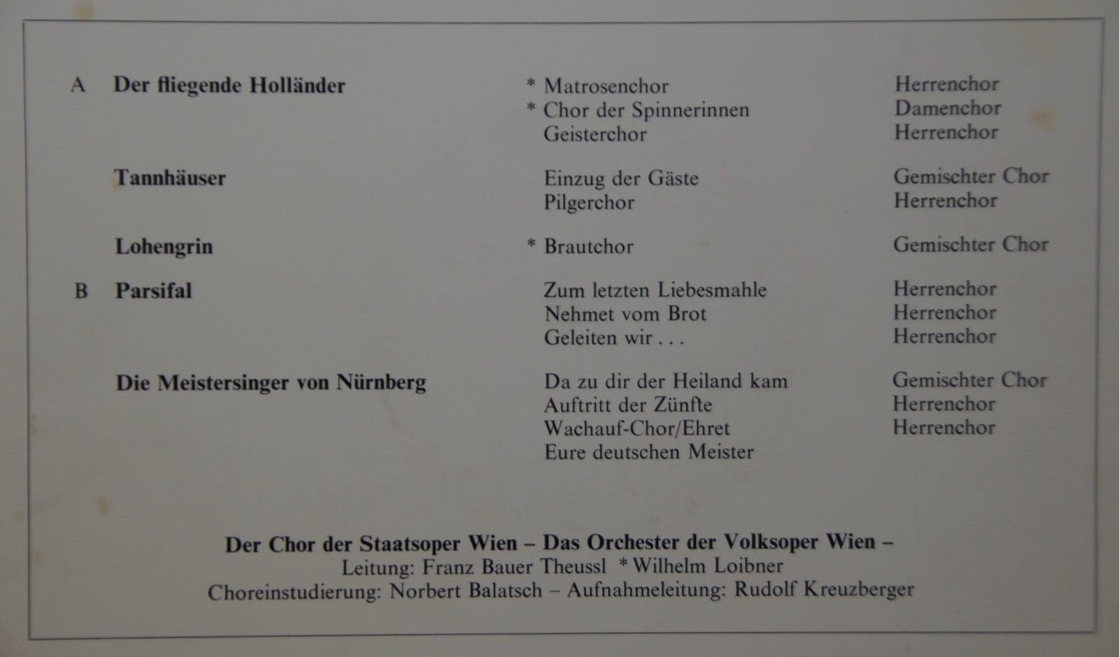 R. Wagner – Słynne chóry operowe – Staatsoper Wien, Theussl, Loibner (LP)
