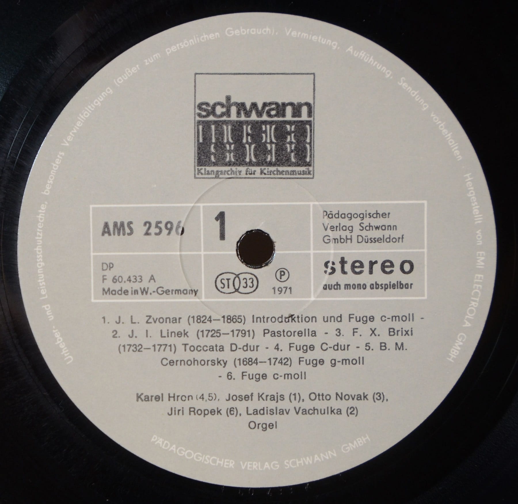 Label: SCHWANN MUSICA MUNDI | Format: LP 12" | Prędkość: 33⅓ rpm | Nagranie: Stereo | Stan: EX