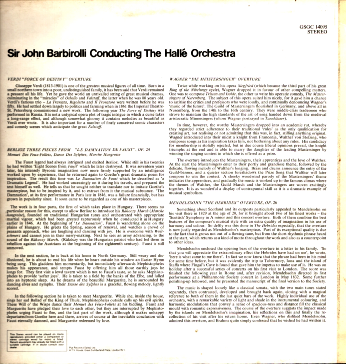 Różni kompozytorzy – Uwertury – Sir John Barbirolli – The Hallé Orchestra (LP)