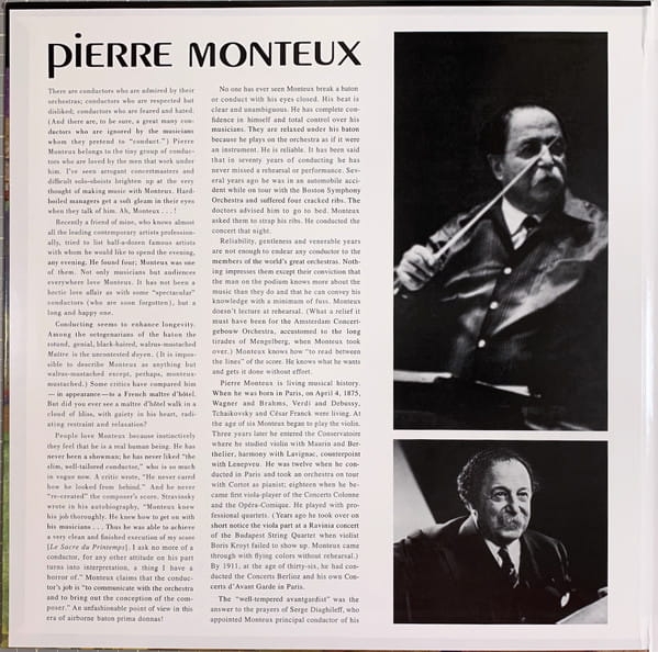 Pietruszka Igora Strawinskiego pod batuta Pierre Monteaux z Orkiestra Symfoniczna w Bostonie - jedno z najwazniejszych nagran w historii fonografii. Monteux byl przy narodzinach tego baletu w 1911 roku jako dyrygent prawykonania w Paryzu - jego nagranie dla RCA jest swiadectwem bezposredniej tradycji wykonawczej.