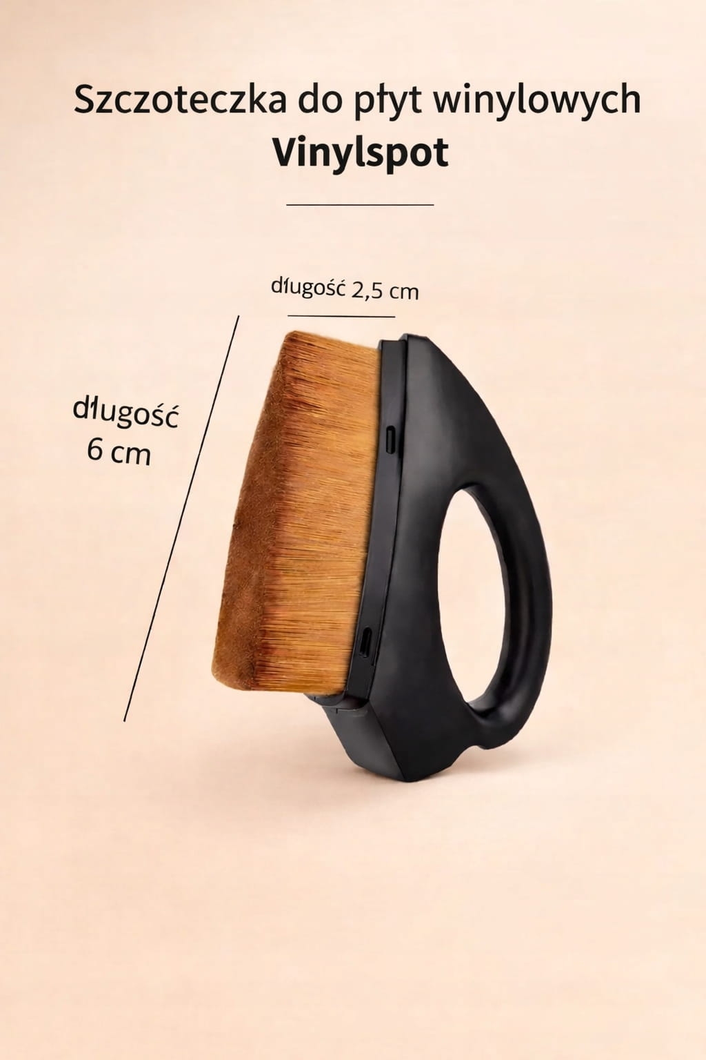 Wielkość: długość 6 cm, wysokść włosia 2,5 cm Najważniejsze cechy Silne właściwości antystatyczne Specjalne przewodzące włókno oraz rączka odprowadzają ładunki elektrostatyczne, dzięki czemu płyta mniej przyciąga kurz. 250 000 ultra cienkich, gęstych włókien nylonowych Docierają głęboko w rowki płyty i skutecznie usuwają drobiny kurzu oraz brudu. Do czyszczenia na sucho i na mokro Sprawdza się zarówno w codziennej pielęgnacji, jak i jako element pełnego procesu czyszczenia winyli. Bezpieczna dla płyt winylowych Delikatne, a jednocześnie skuteczne włosie nie rysuje powierzchni. Produkt sprawdzony i chwalony przez użytkowników.