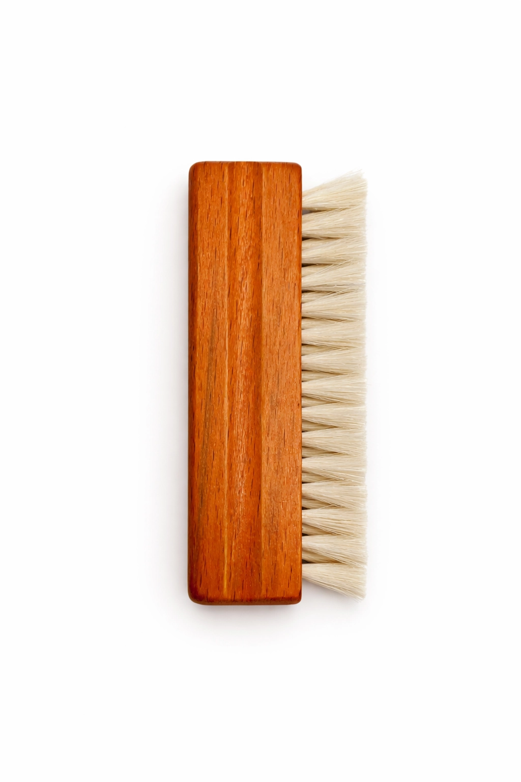 Dwa rzędy koziego włosia zwiększają skuteczność czyszczenia. Włosie jest naturalnie antystatyczne — odprowadza ładunki elektrostatyczne które przyciągają kurz, zamiast go tylko przesuwać. Efekt: mniej pops and crackles podczas odtwarzania.