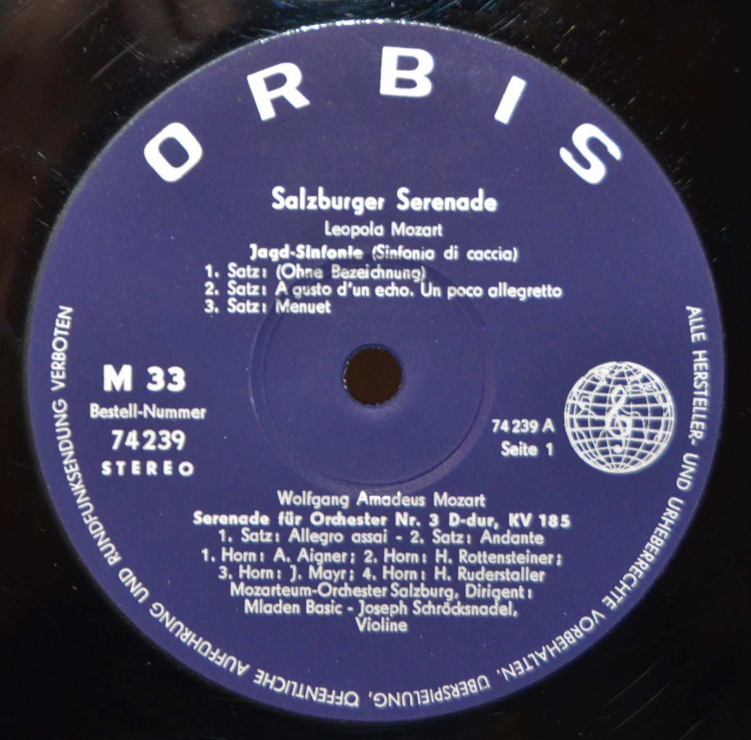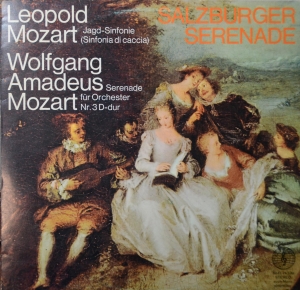 Orkiestra Mozarteum z Salzburga wykonuje utwory rodziny Mozartów. Symfonia „Di Caccia” Leopolda Mozarta na cztery rogi i smyczki. Corni di Caccia to rogi myśliwskie. Na płycie jest jeszcze Serenada nr 3 W. A Mozarta. Orkiestrą z Salzburga kieruje chorwacki pianista i dyrygent Mladen Basić.