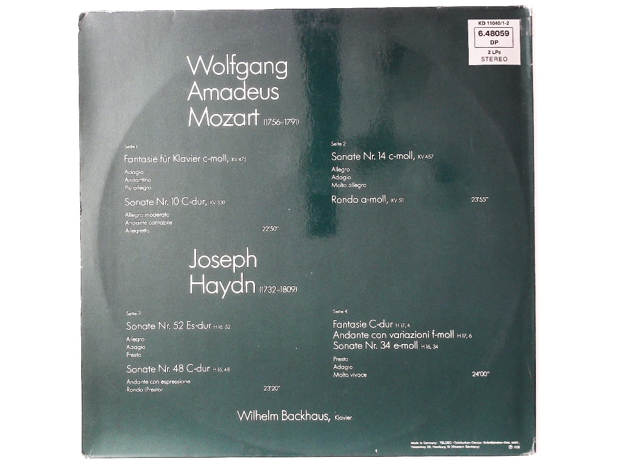 W.A. Mozart,Haydn-Sonaty i Fantazje-Backhaus 2 Lp.