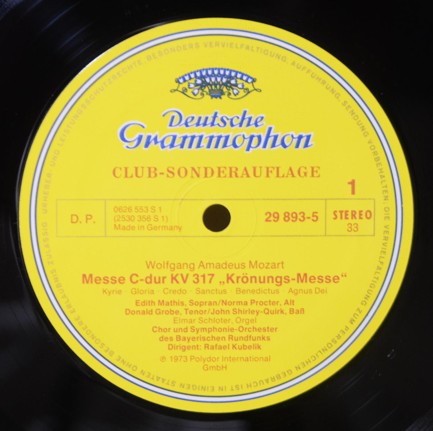 Msza koronacyjna C – dur KV.417 Mozarta. Jego wielkie dzieło sakralne. Piękno w sensie ścisłym. Na płycie jest jeszcze Msza C – dur KV.220 i motet „Ave Verum Corpus”(Witaj Prawdziwe Ciało) skomponowany dla przyjaciela, muzyka kościelnego Antona Stolla. Wielki, wspaniały kapelmistrz Rafael Kubelik kieruje Orkiestrą Symfoniczną Bawarskiego Radia. Niemieckie, klubowe wydanie z 1973 roku. Stan płyty i okładki EX.