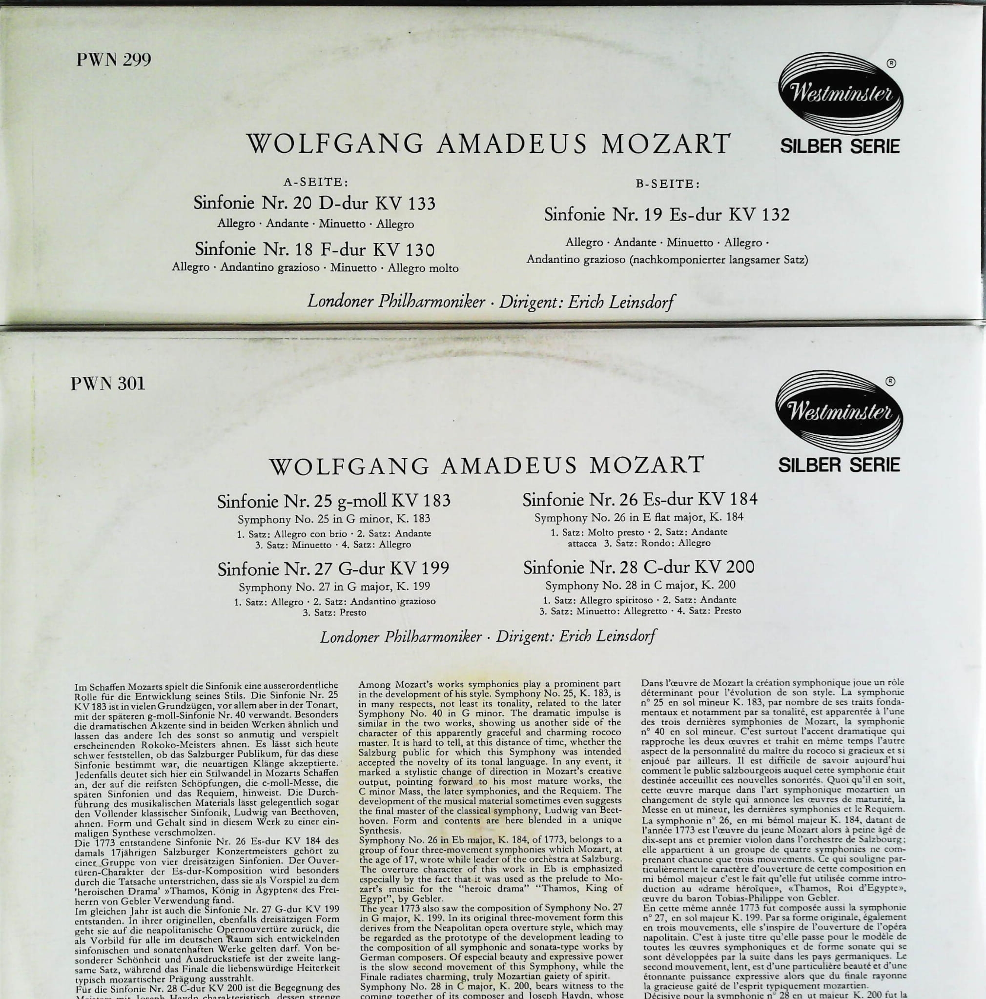 W.A. Mozart-Symfonie nr.18-20 i nr.25-28-Leinsdorf 2Lp.