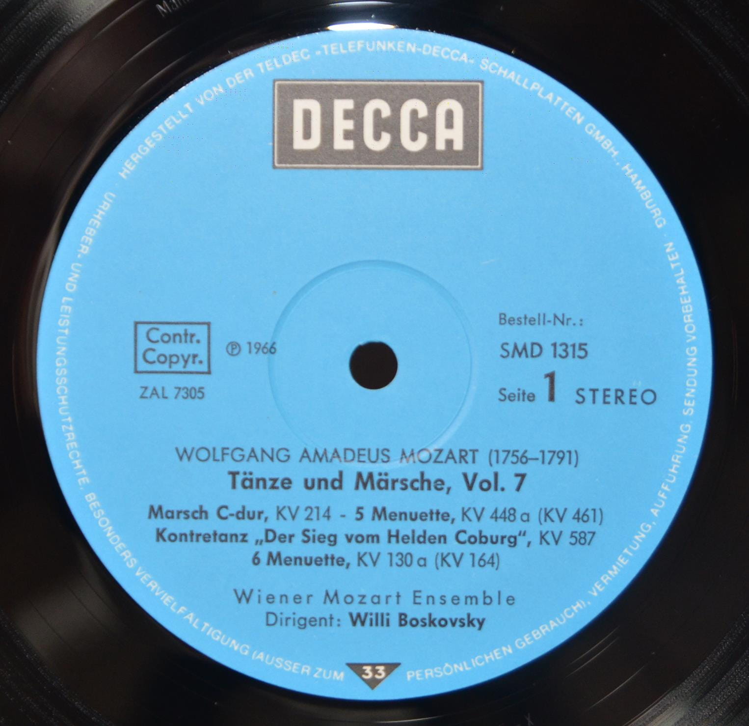 Willy Boskovsky, wieloletni dyrektor Filharmonii Wiedeńskiej, kieruje Mozartowskim Zespołem z Wiednia. Po prostu Klasa. Nagroda Grand Prix du Disque za realizację nagrania. Niemieckie, pierwsze wydanie z 1966 roku. Stan płyty NM, okładki VG.