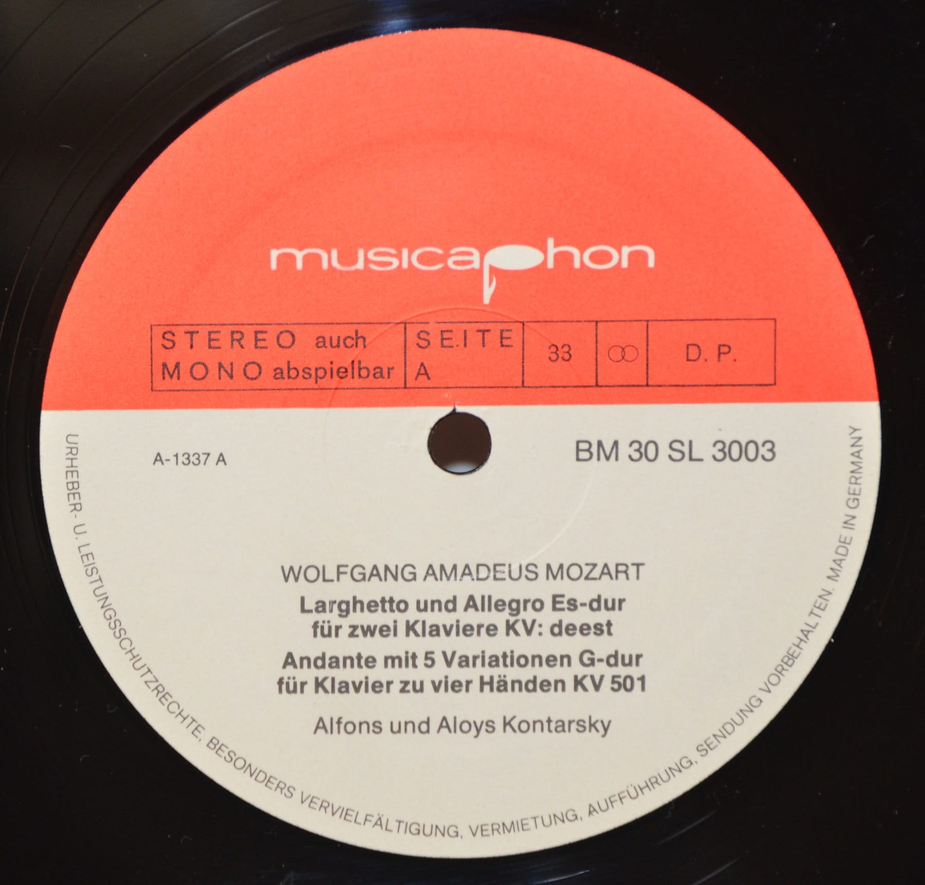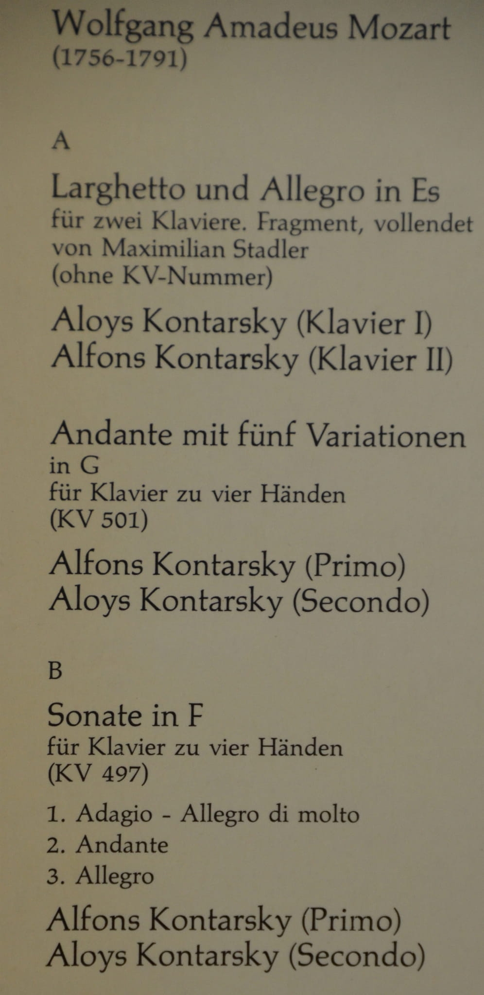 W.A. Mozart – Utwory na Cztery Ręce – Alfons i Aloys Kontarsky (LP)
