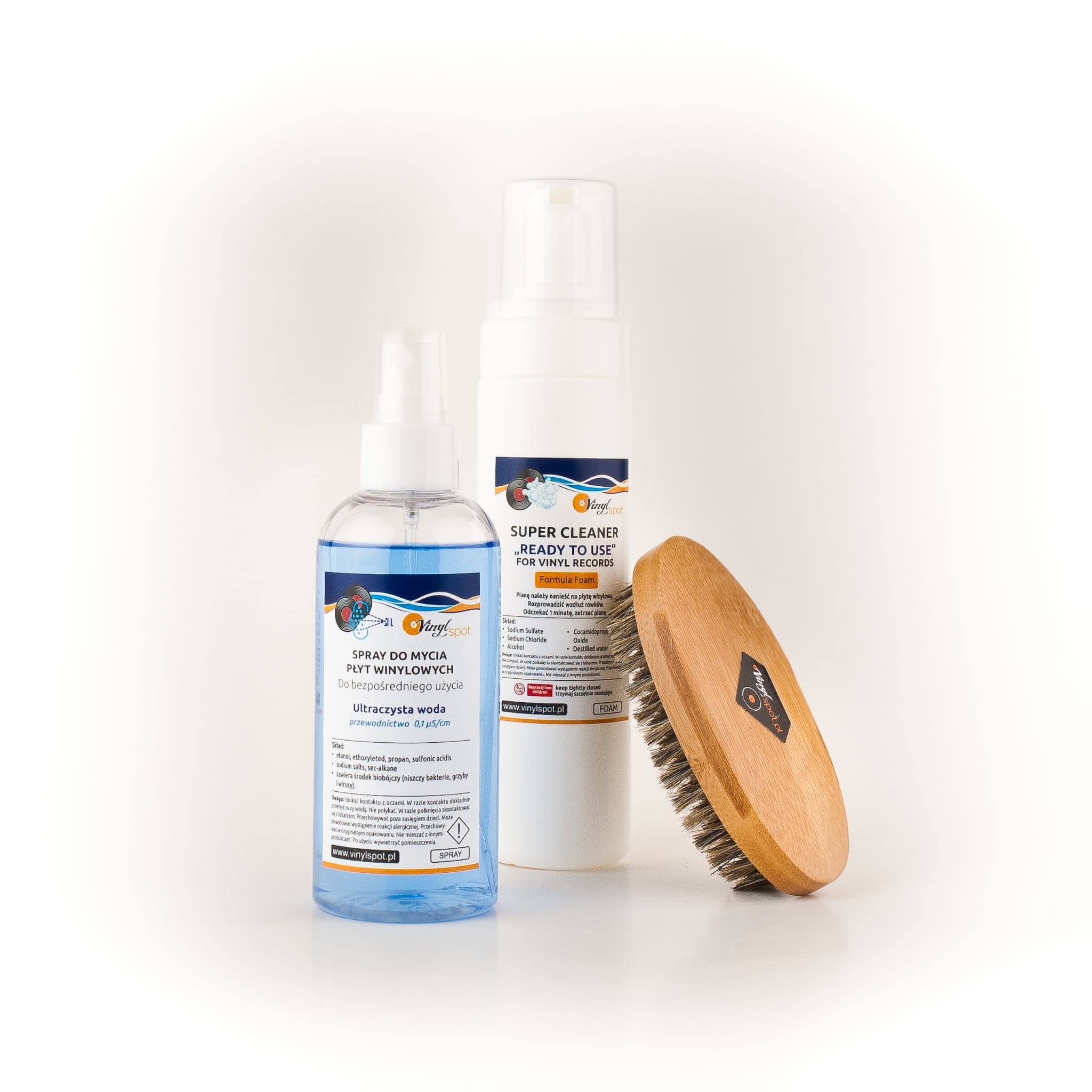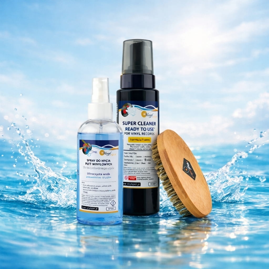 Gruntowne mycie bardzo brudnych płyt — bez myjki.Zastosowanie: zestaw do intensywnego mycia bez myjki.Przeznaczenie: płyty winylowe PVC silnie zabrudzone, zaniedbane, z giełdy.Zawartość: pianka aktywna 150ml + płyn antystatyczny w mgiełce 200ml + szczotka z włosia dzika.Pianka: pH ok. 9, czas działania 2–3 minuty, nie stosować na szelak.Szczotka z włosia dzika: stosować wyłącznie na mokro — na sucho zbyt twarda.Włosie dzika mięknie pod wpływem wilgoci i bezpiecznie wchodzi w rowek.Zapasowa pianka dostępna osobno.Zalecenie: wymień koperty na nowe po myciu.