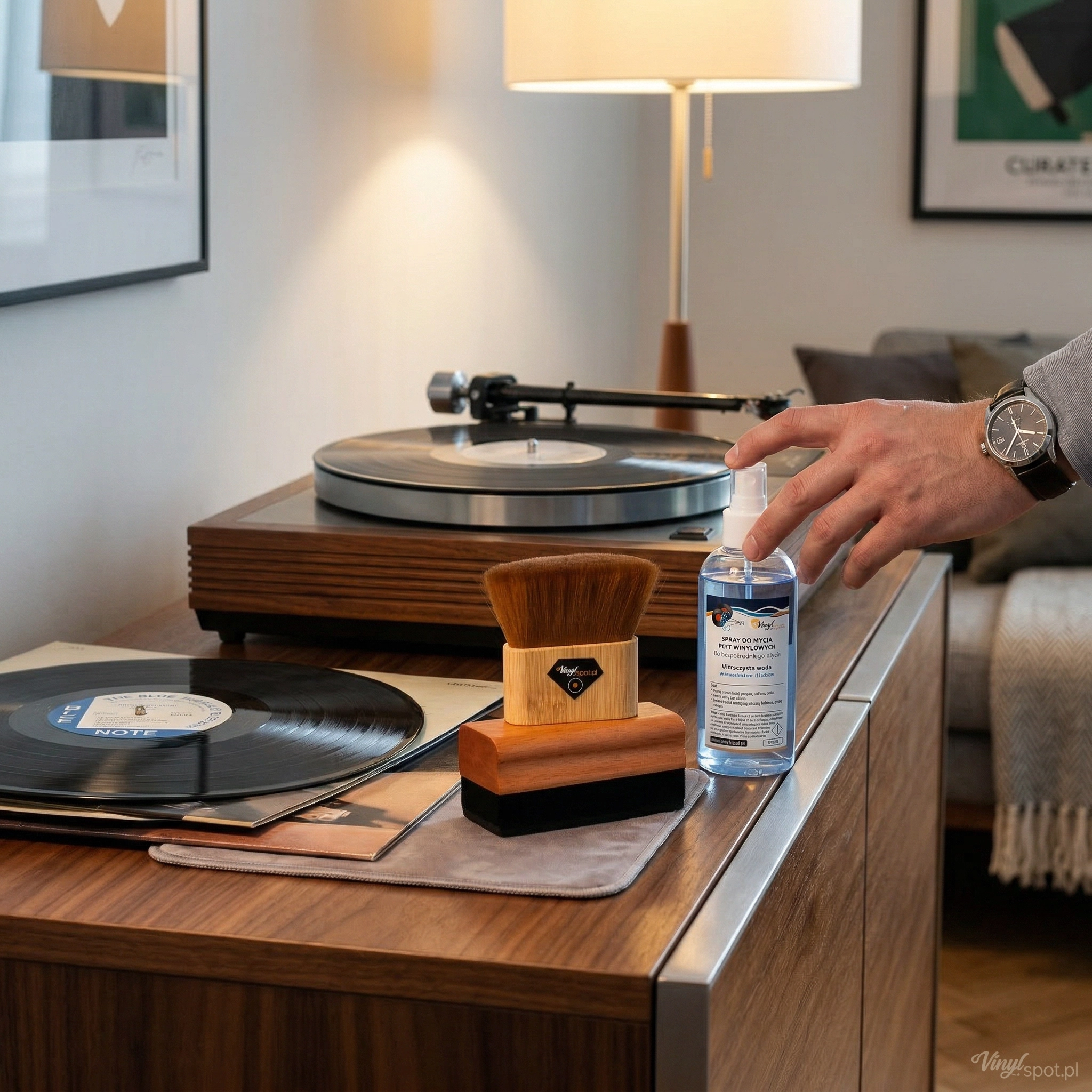 Zestaw do mycia płyt winylowych czyścik welurowy , pedzel antystatyczny i spray USA Style - vinylspot